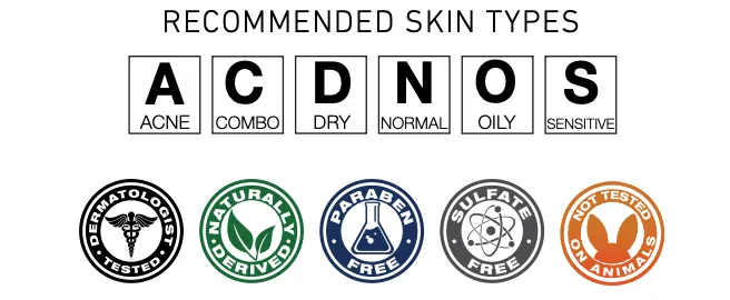 • Antioxidants and skin-soothers Acai, Green Tea, Aloe, and Willow Bark protect the skin from extrinsic factors that strip the skin’s natural moisture barrier